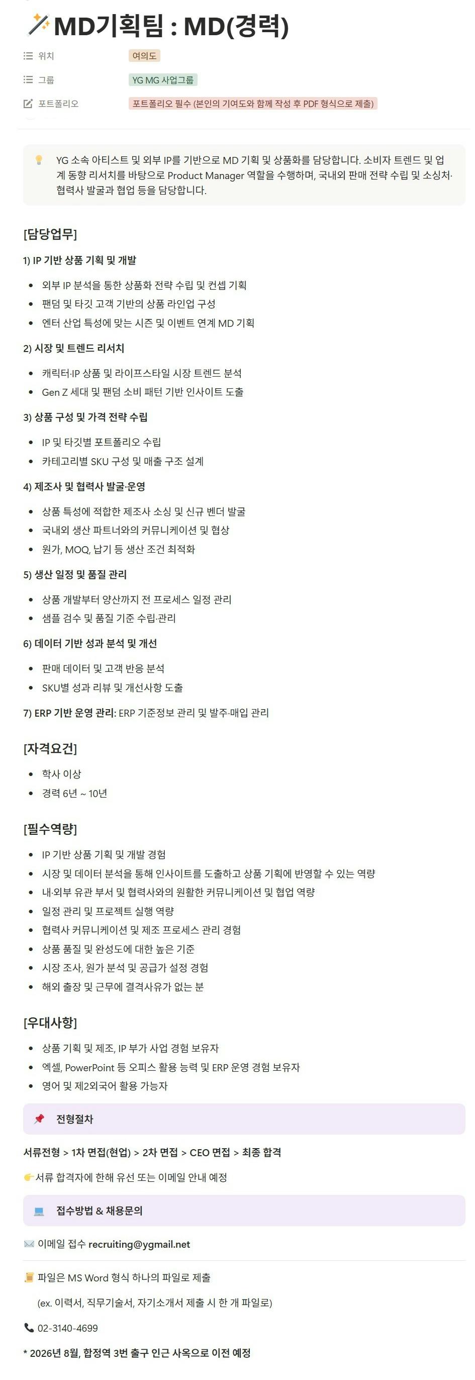 MD기획팀 : MD(경력)