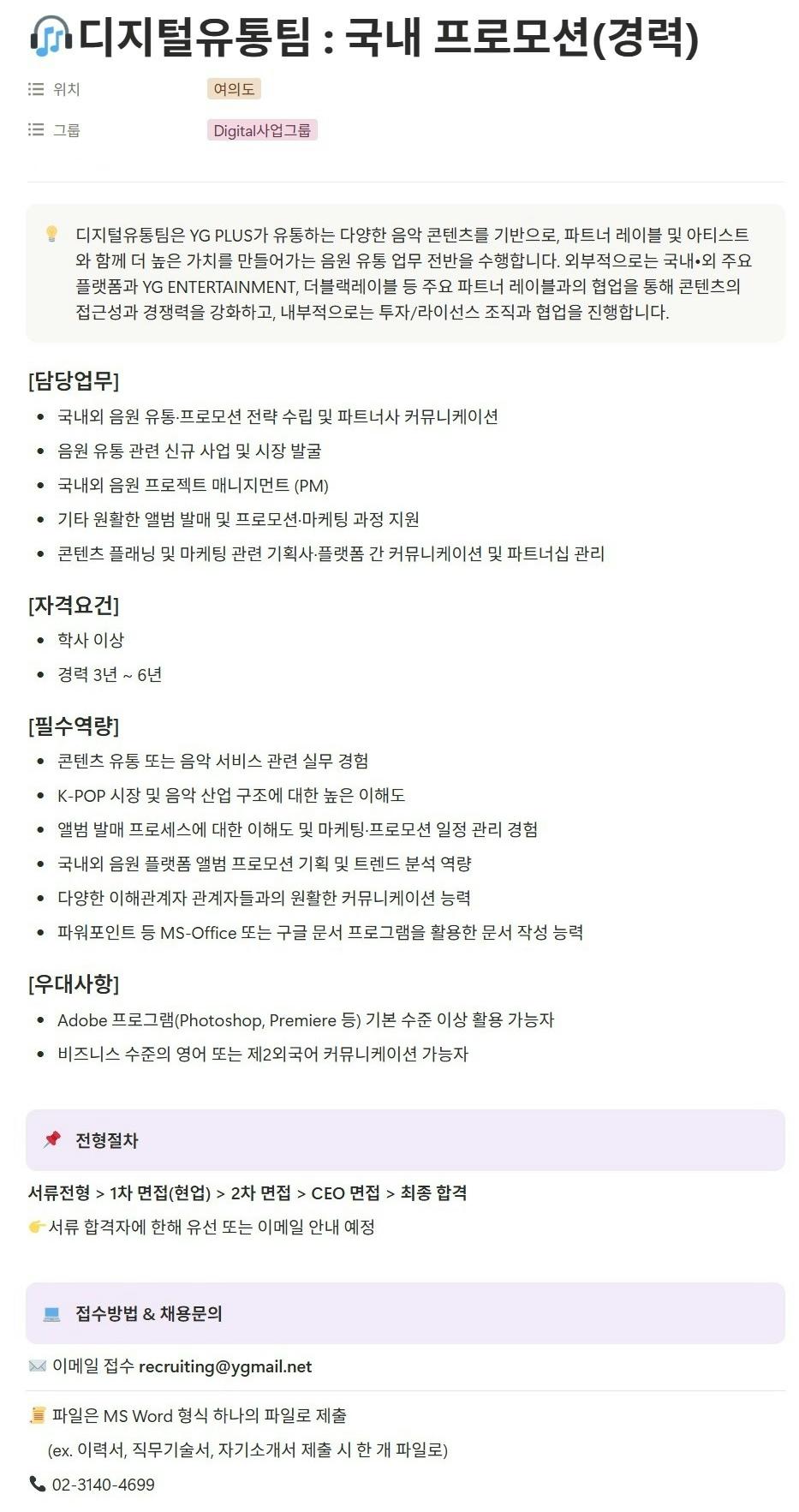 YG플러스에서 음악솔루션, IP솔루션 등 다양한 신성장 사업을 함께 이끌어갈 인재를 찾습니다.