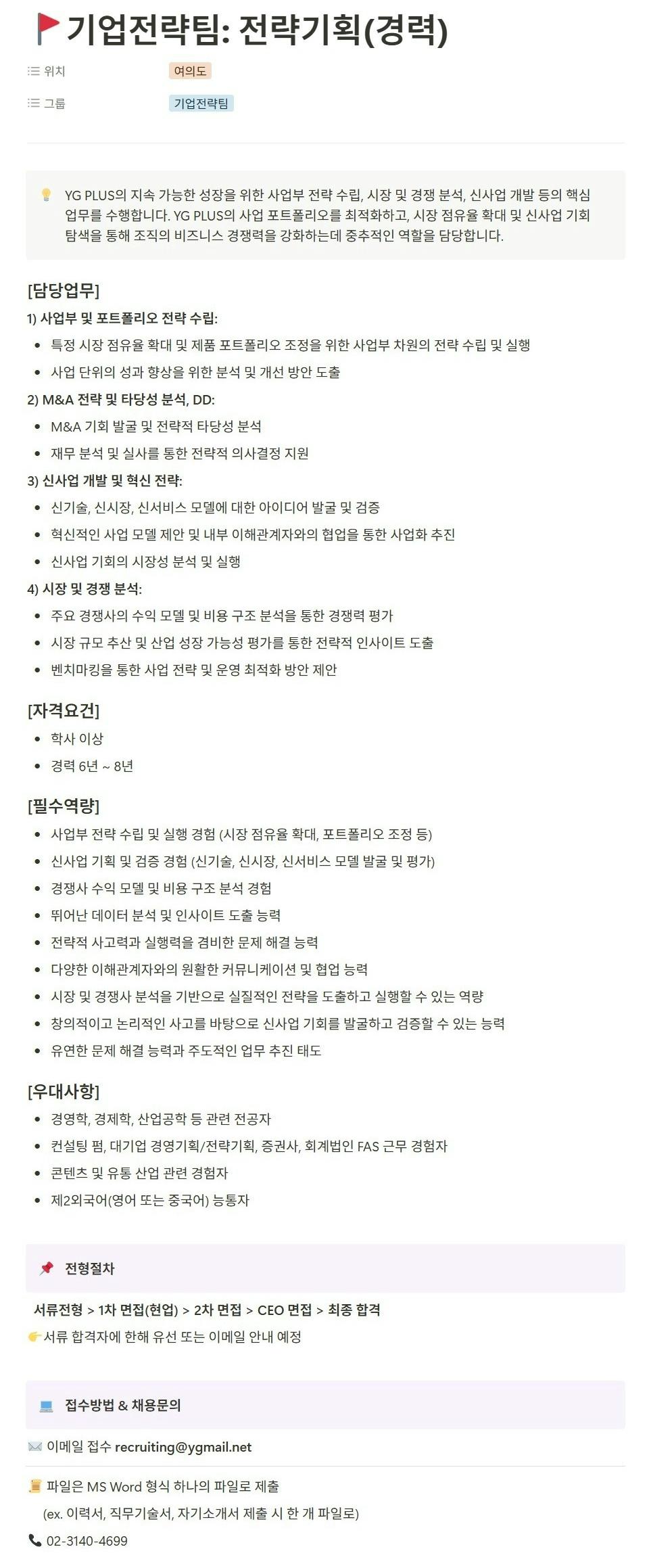 기업전략팀 : 전략기획(경력)